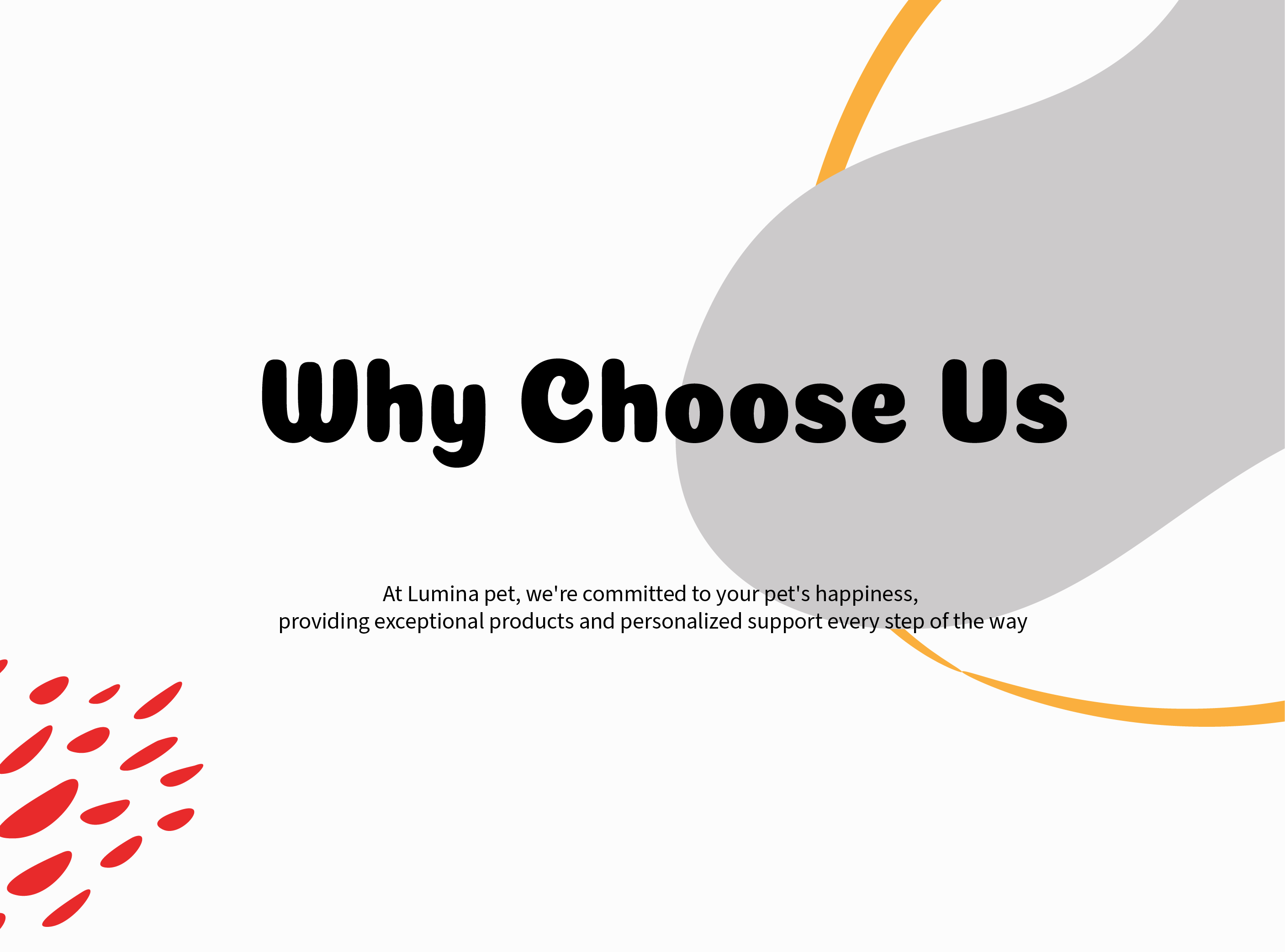 Lumina offers a variety of premium pet products, including grooming tools, toys, accessories, and health essentials for pets.